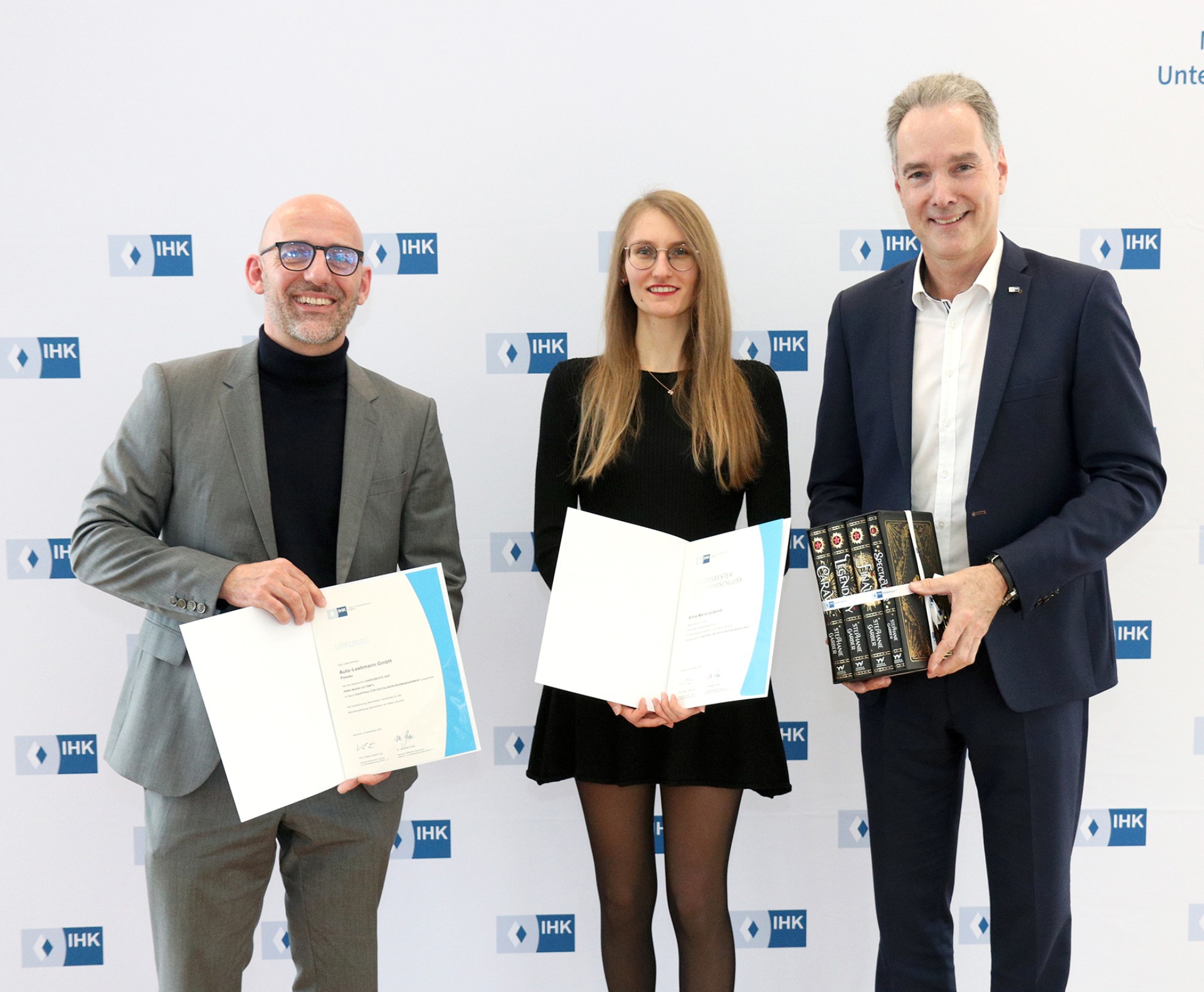 IHK-Hauptgeschäftsführer Alexander Schreiner überreichte den jungen Fachkräften sowie ihren Ausbildungsbetrieben die Auszeichnung. Zuvor zählte er auf, was notwendig ist, um ein solch herausragendes Ergebnis zu erreichen, etwa Wissen, Können, Talent sowie Freude am Lernen und an der Ausbildung. Wichtig sei auch ein stabiles und förderndes Umfeld, das die Auszubildenden unterstützt. Einen Dank richtete der IHK-Chef daher an die Familien und Freunde der Landesbesten, aber ebenso an die Partner der dualen Ausbildung: die Berufsschulen sowie die Ausbildungsbetriebe mit ihren vielen engagierten Ausbilderinnen und Ausbildern. Es sei richtig, deren Beitrag für den Erfolg zu würdigen, betonte Schreiner – deshalb erhielten bei der Ehrung in Passau auch die Vertreter der Ausbildungsbetriebe eine IHK-Urkunde.