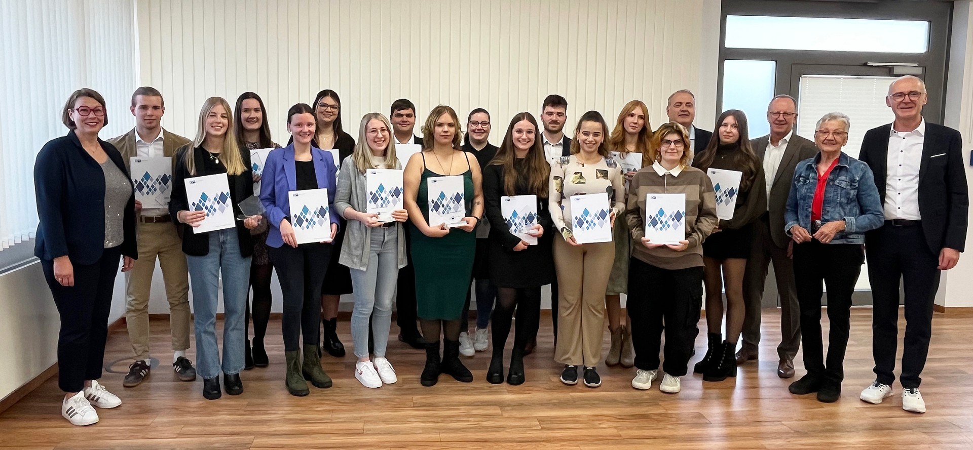 Knapp 2.900 Auszubildende hatten im vergangenen Sommer bei der IHK Niederbayern ihre Abschlussprüfung abgelegt – aber nur wenige von ihnen gehören zu den Besten, die es geschafft haben, mit der Gesamtnote „sehr gut“ abzuschließen. 19 dieser Einser-Absolventen kommen aus dem Landkreis Rottal-Inn. Bei einer Feier am Mittwoch bei der VR-Bank Rottal-Inn in Pfarrkirchen hat IHK-Vizepräsidentin Michaela Baumgartner diese Prüfungsbesten für ihre Spitzenleistungen ausgezeichnet. Eine besondere Ehrung erhielten zudem die fünf Kammerbesten aus dem Landkreis: Sie hatten in ihren jeweiligen Ausbildungsberufen den besten Abschluss im gesamten IHK-Bezirk Niederbayern erzielt.