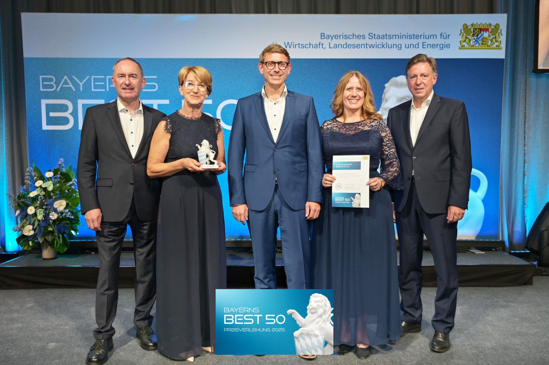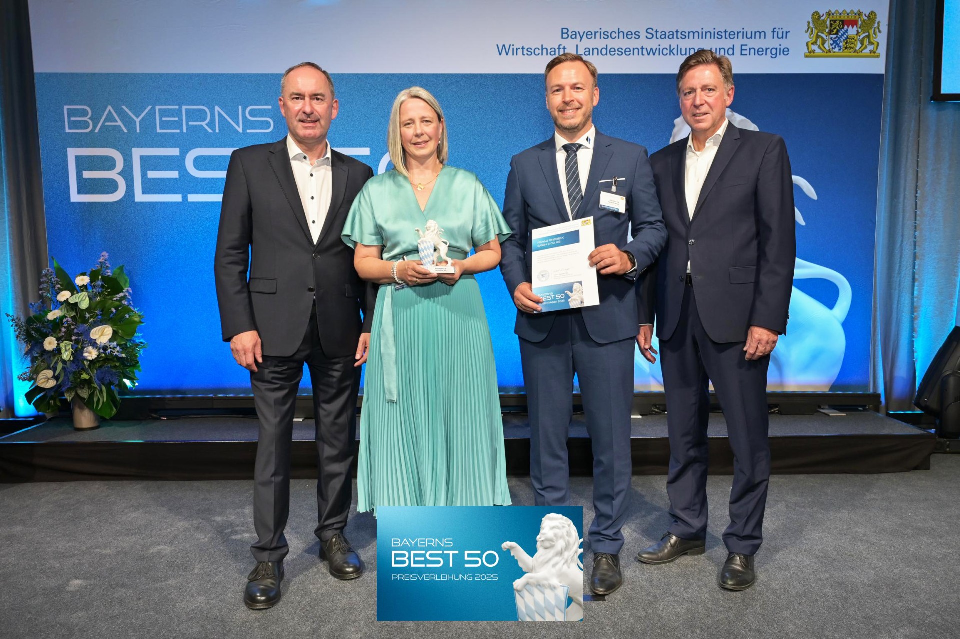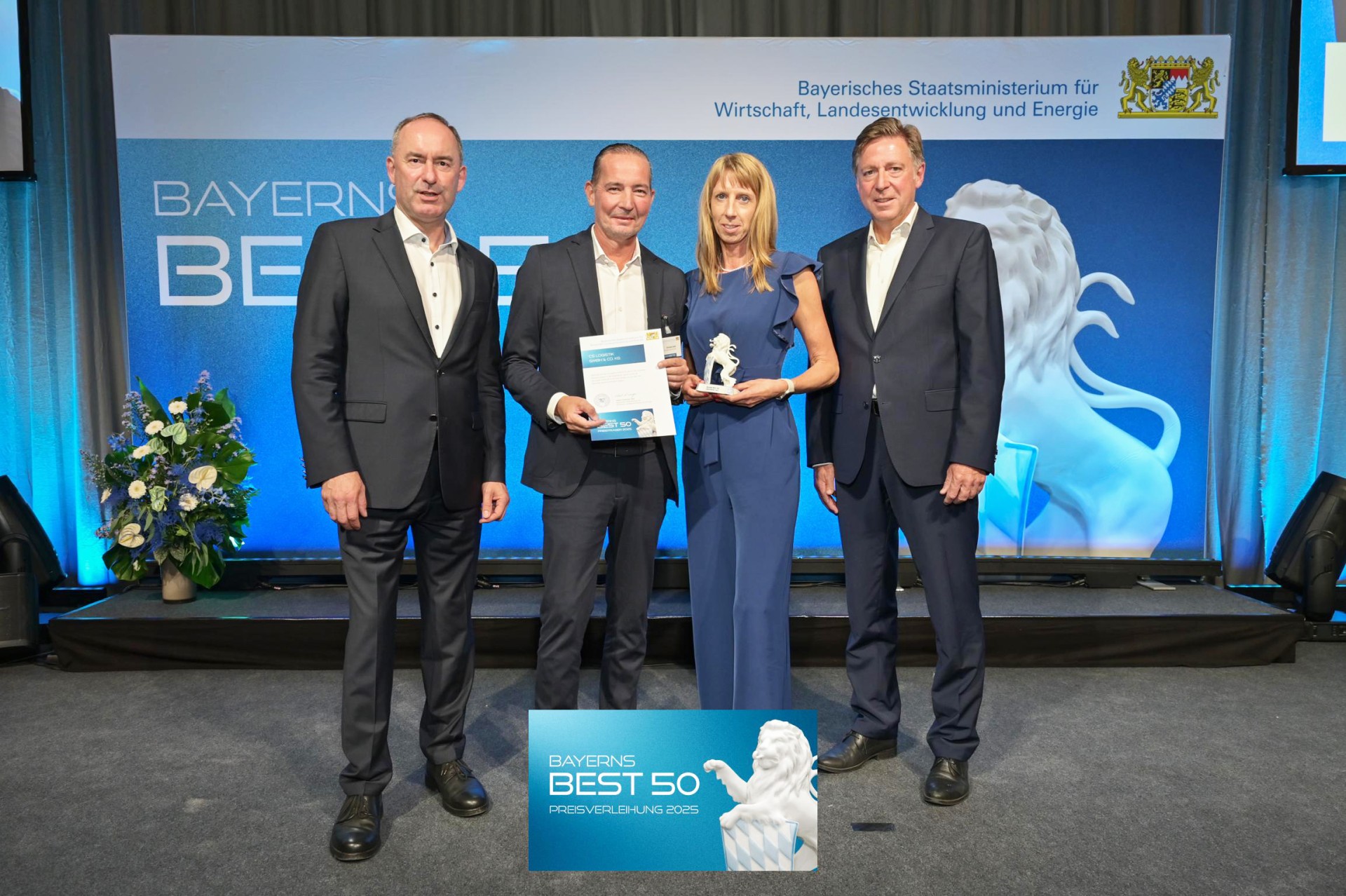 BAYERNS BEST 50 ging bereits in die 24. Runde. „Unsere Preisträger haben die Zeichen der Zeit erkannt“, sagte Hubert Aiwanger, Bayerischer Staatsminister für Wirtschaft, Landesentwicklung und Energie (jeweils links). „Die Preisträger leben Unternehmertum, übernehmen Verantwortung und schaffen die Arbeitsplätze, die die Grundlage für den hohen Lebensstandard in Bayern bilden“, so der Minister weiter, der mit Wirtschaftsprüfer Prof. Dr. Thomas Edenhofer von der unabhängigen Jury (jeweils rechts) die Preise überreichte. Die niederbayerischen Preisträger in alphabetischer Reihenfolge:
