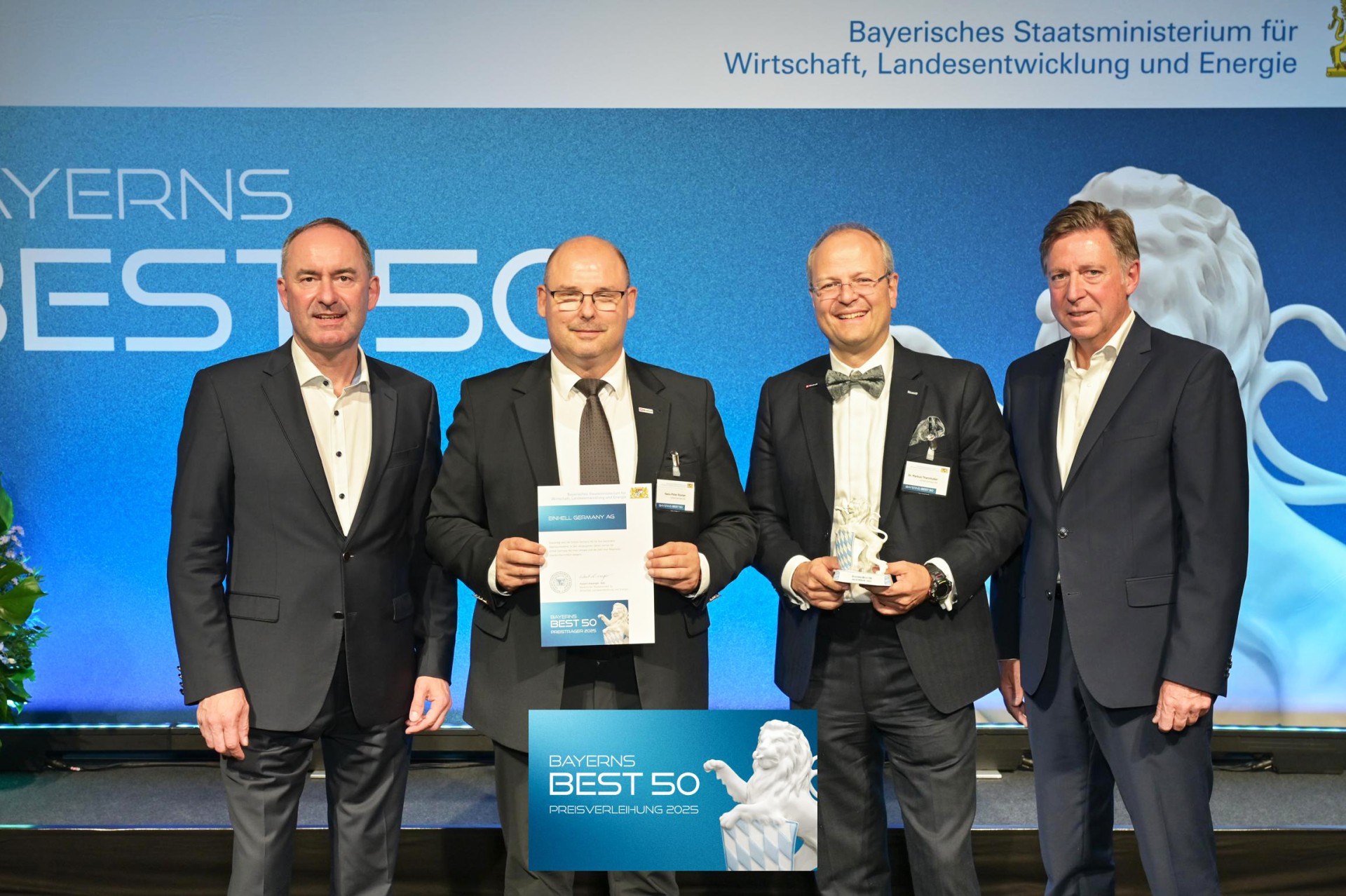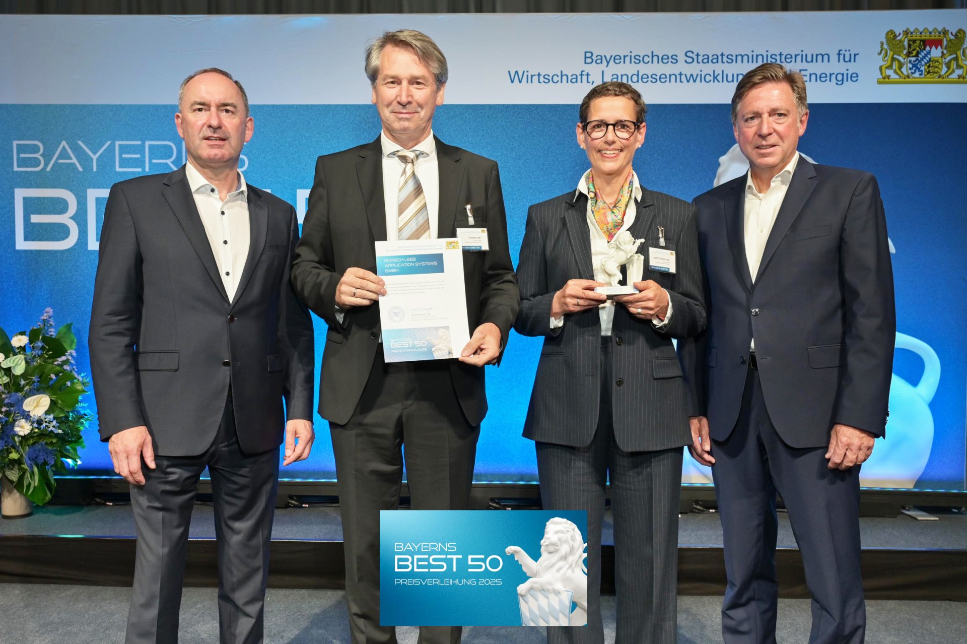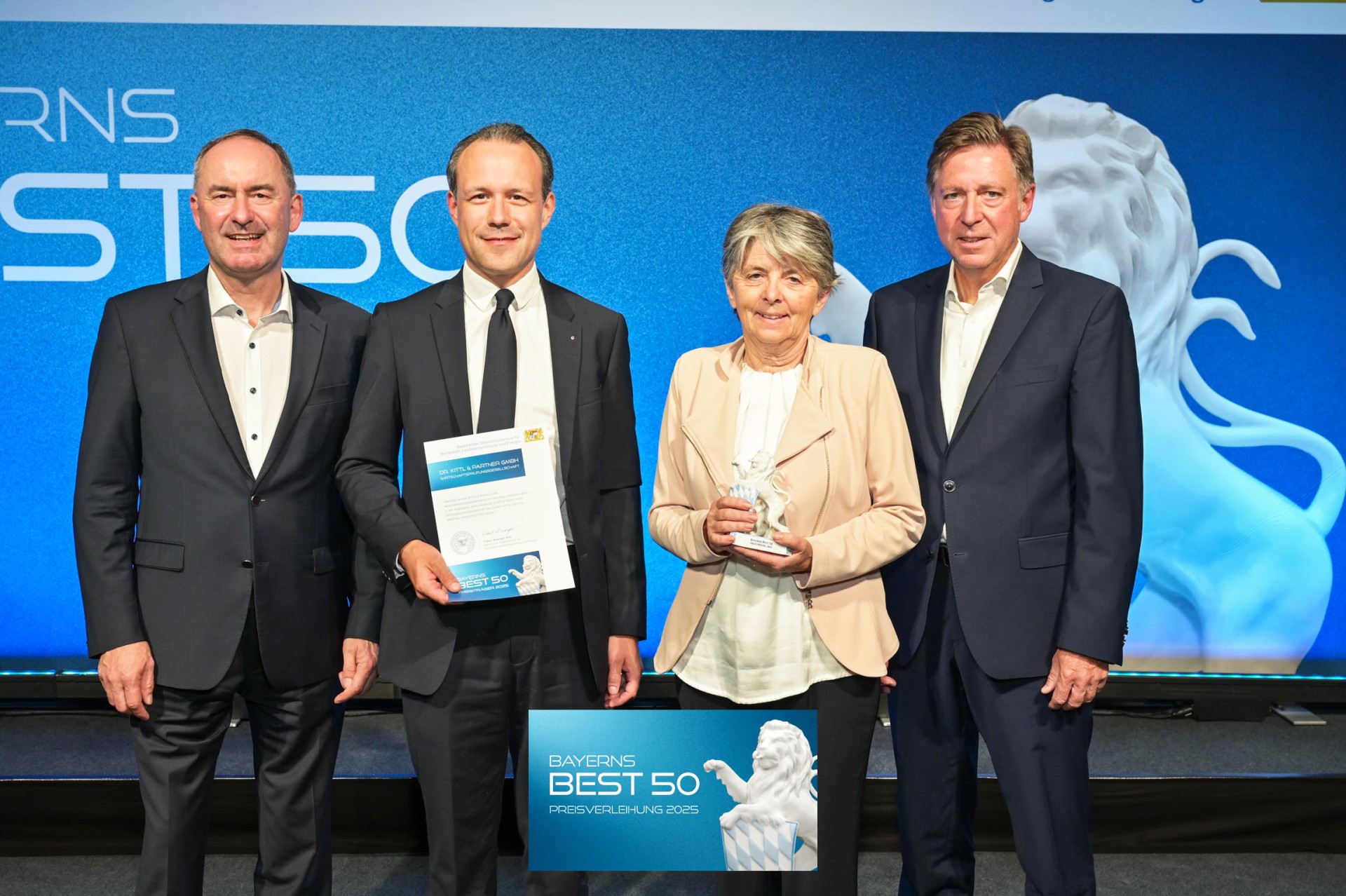 BAYERNS BEST 50 ging bereits in die 24. Runde. „Unsere Preisträger haben die Zeichen der Zeit erkannt“, sagte Hubert Aiwanger, Bayerischer Staatsminister für Wirtschaft, Landesentwicklung und Energie (jeweils links). „Die Preisträger leben Unternehmertum, übernehmen Verantwortung und schaffen die Arbeitsplätze, die die Grundlage für den hohen Lebensstandard in Bayern bilden“, so der Minister weiter, der mit Wirtschaftsprüfer Prof. Dr. Thomas Edenhofer von der unabhängigen Jury (jeweils rechts) die Preise überreichte. Die niederbayerischen Preisträger in alphabetischer Reihenfolge: