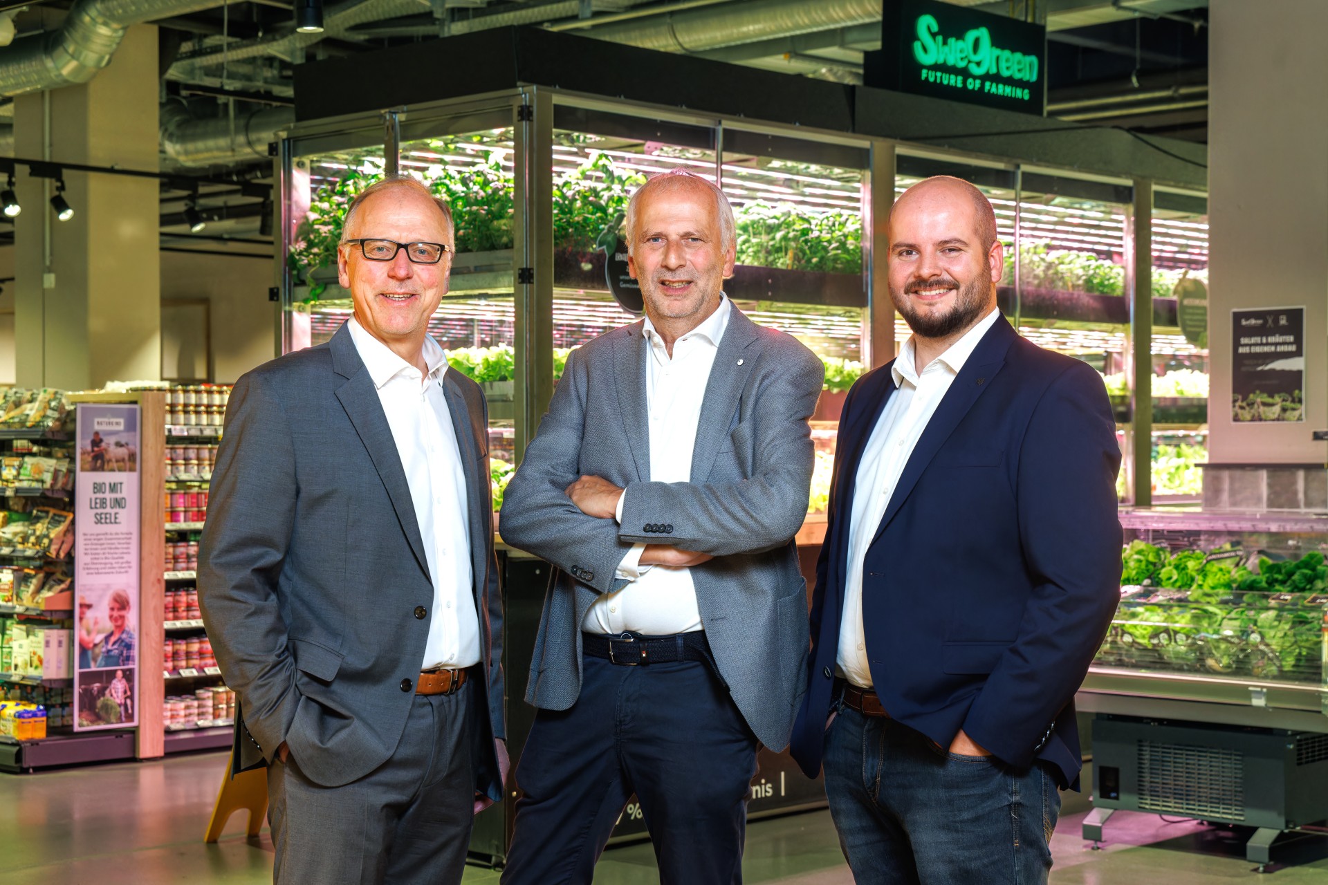 EDEKA Stadler + Honner, FRISCH-NACHBARN in Unterföhring bei München Geschäftsführung: (v.li.) Stephan Stadler, Hans-Jürgen Honner und Daniel Honner Foto: EDEKA Stadler + Honner / HRSchulz