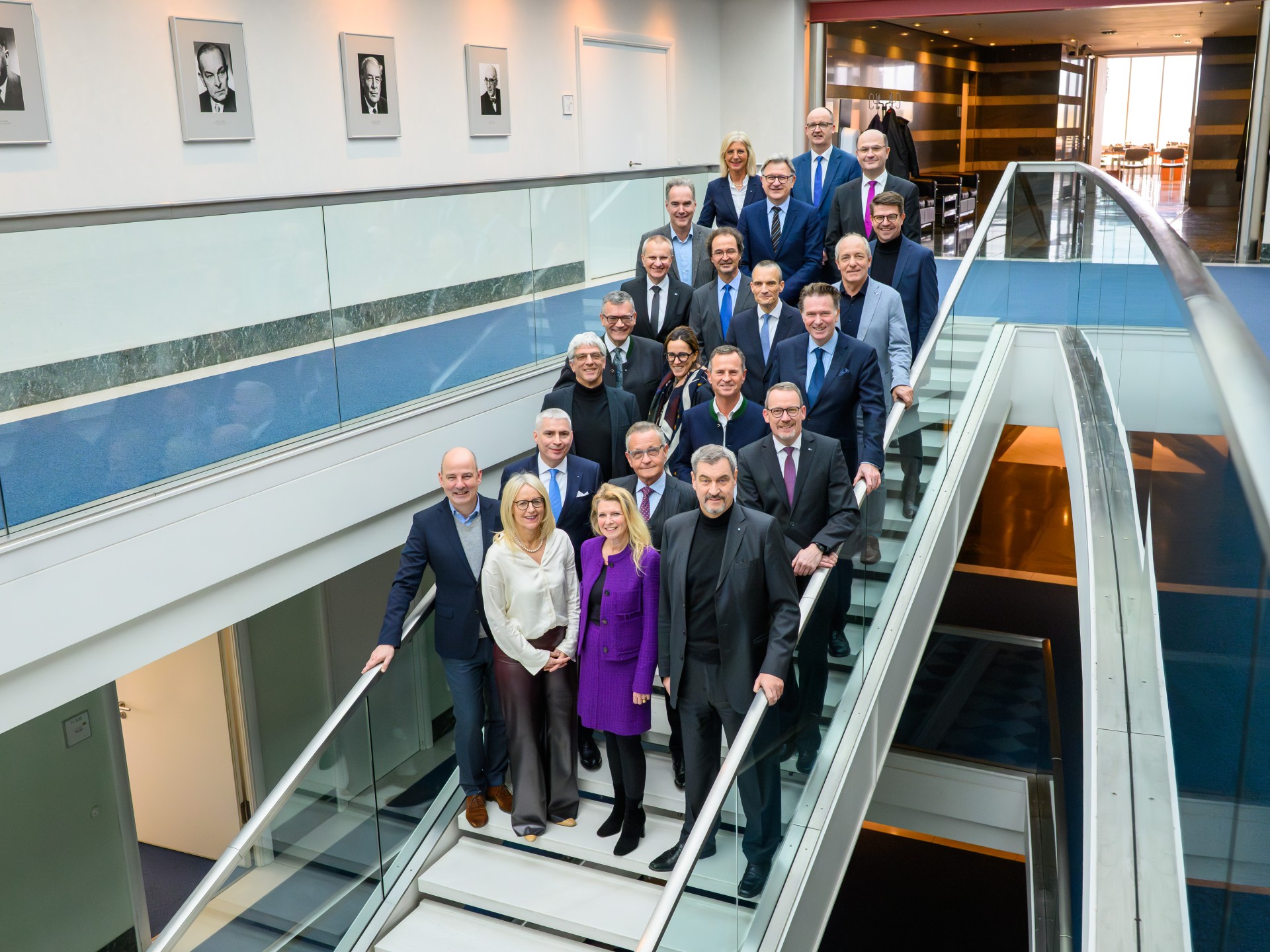 Ein zentrales wirtschaftspolitische Ziel sei laut Söder, die US-Zölle wieder zu senken. Zudem müsse man der bayerischen Autoindustrie Zeit für die Transformation verschaffen. Söder erklärte, ohne Bayerns Investitionen in Forschung und Hightech-Agenda wäre der Stellenabbau in dieser Schlüsselbranche schon viel dramatischer ausgefallen. Am Gespräch nahmen auch Sozialministerin Ulrike Scharf, Finanzminister Albert Füracker und Staatskanzleichef Florian Herrmann teil.